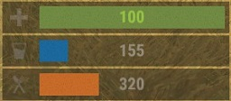 | 狩猟用の弓 | 木:200、布:50 | 右クリックで構え、左クリックで射撃。序盤の主力武器です。 |